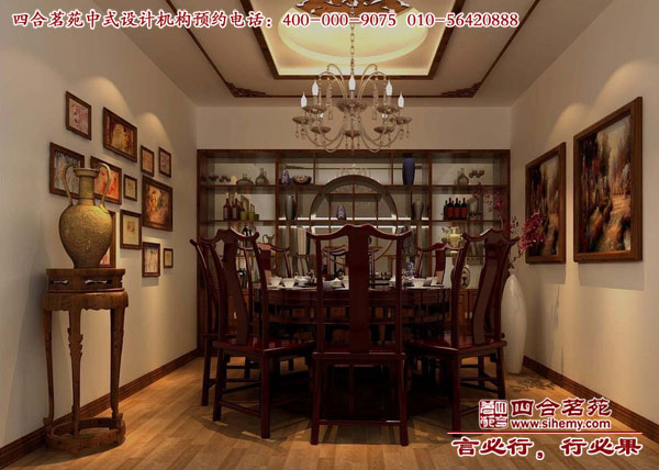 中式吊頂和家具使整個空間都散發(fā)著濃濃的中式味,加上字畫和一些配飾的烘托更能凸顯出中式的高檔。